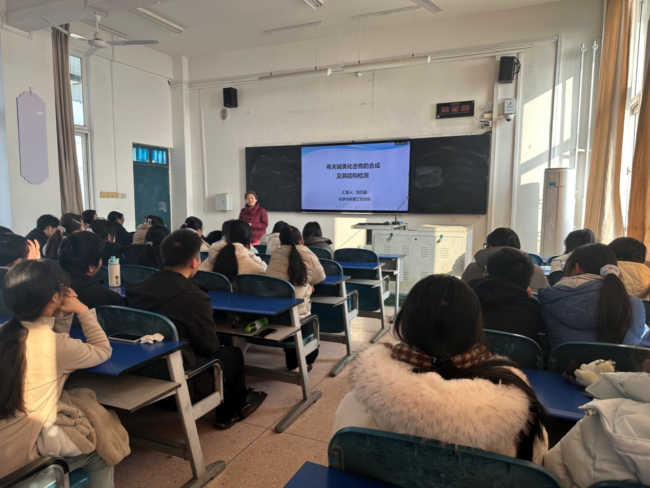 2025年12月18日下午,122cc太阳成集团刘巧茹教授在4号教学楼4403教室做了一场题为《希夫碱类化合物的合成及其结构检测》的学术报告,我院25、24和23级化学专业学生参加了此次学术活动。
