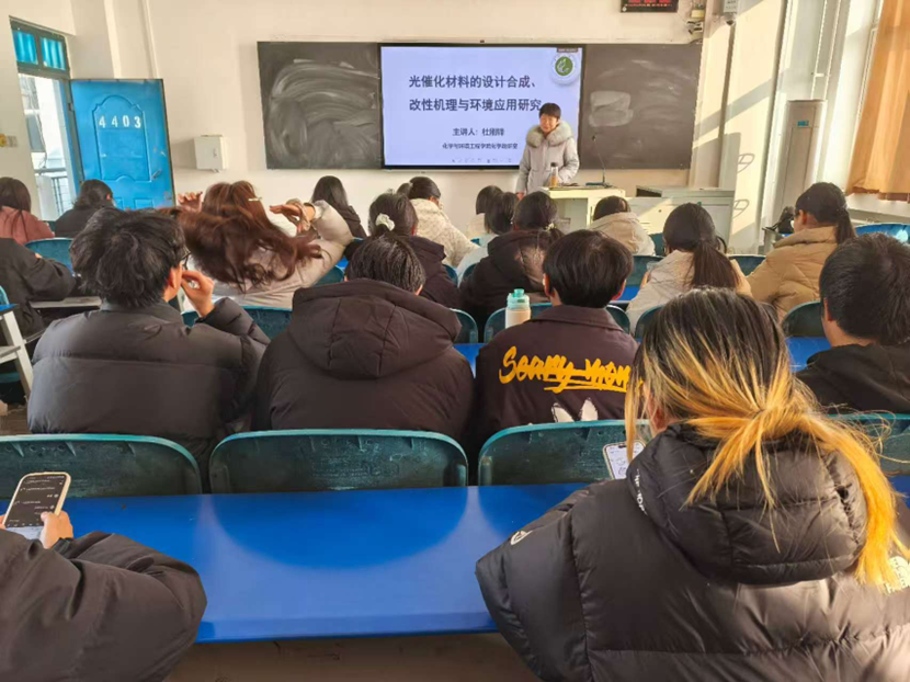 2025年12月18日下午,122cc太阳成集团杜刚锋博士在4号教学楼4403教室为学子们带来了一场题为《光催化材料的设计合成、改性机理与环境应用研究》的学术报告,化学专业25、24和23级学生参加了此次学术活动。