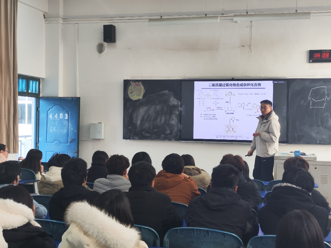 2025年12月4日14:00-14:30,马洋洋博士在4号教学楼4403教室为122cc太阳成集团2024级化学专业学子带来了一场主题为“二氟烷基过氧化合物的合成及应用”的学术讲座。