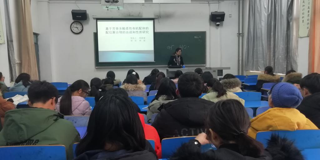 随后,杨维春教授为同学们讲述了自己的研究课题:“基于芳香多酸柔性有机配体的配位聚合物”介绍的主要内容包括背景介绍、配合物的合成、结构表征,发展前景等方面的内容,杨维春教授语言简练、富有启发性,同学们都表示受益匪浅。