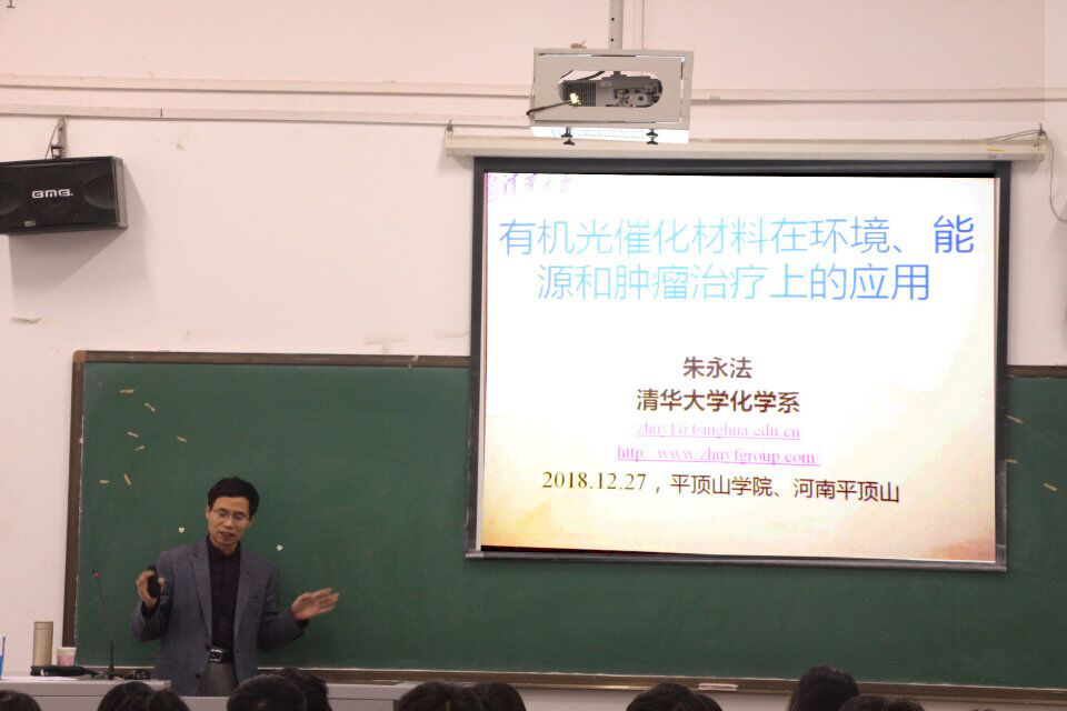 聘任仪式结束后,朱永法教授做了“有机光催化材料在环境、能源和肿瘤治疗上的应用”的学术报告,122cc太阳成集团教师及材料科学与工程专业学生听取了报告。朱永法教授介绍了氨基取代的PDI超分子光催化材料的应用、红光激发光催化活性机理、TCNQ-PDI相互作用、P25与PDI的复合结构、PDI与石墨烯的π-π作用、超分子组装纳米片结构、光催化在肿瘤快速杀灭上的应用探索等方面的研究成果。报告引起了在场师生的极大兴趣,朱教授也热情严谨地回答了同学们感兴趣的问题。