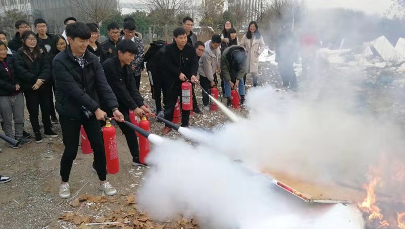 保卫处消防科郝新喜老师首先向参加演练活动的师生们列举了常见校园火灾安全隐患,并用部分校园火灾案例为警示,提醒大家防范于未然。在演练开始之前,详细讲解了干粉灭火器和二氧化碳灭火器的正确使用方法及注意事项,并进行了专业的灭火演示。随后,参与演练活动的老师和学生分批次地进行现场灭火和危化品安全实战演练,取得了较好的演练效果。